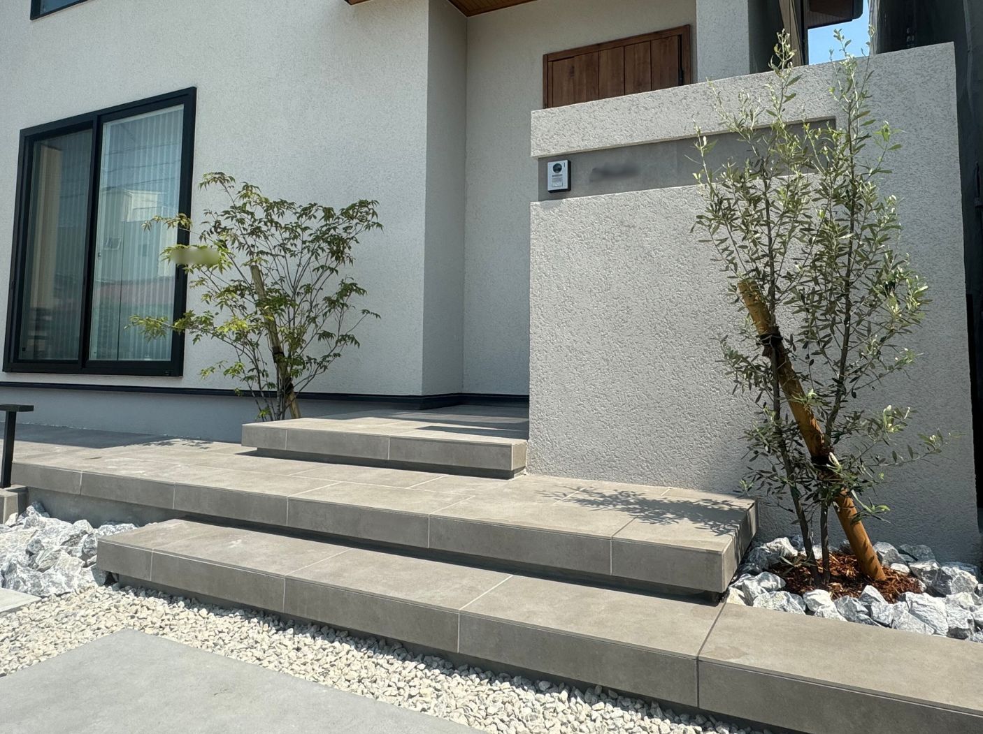 新築及びリフォーム外構・エクステリア工事・アプローチ・階段(タイル・石貼り、洗い出し仕上げ等)