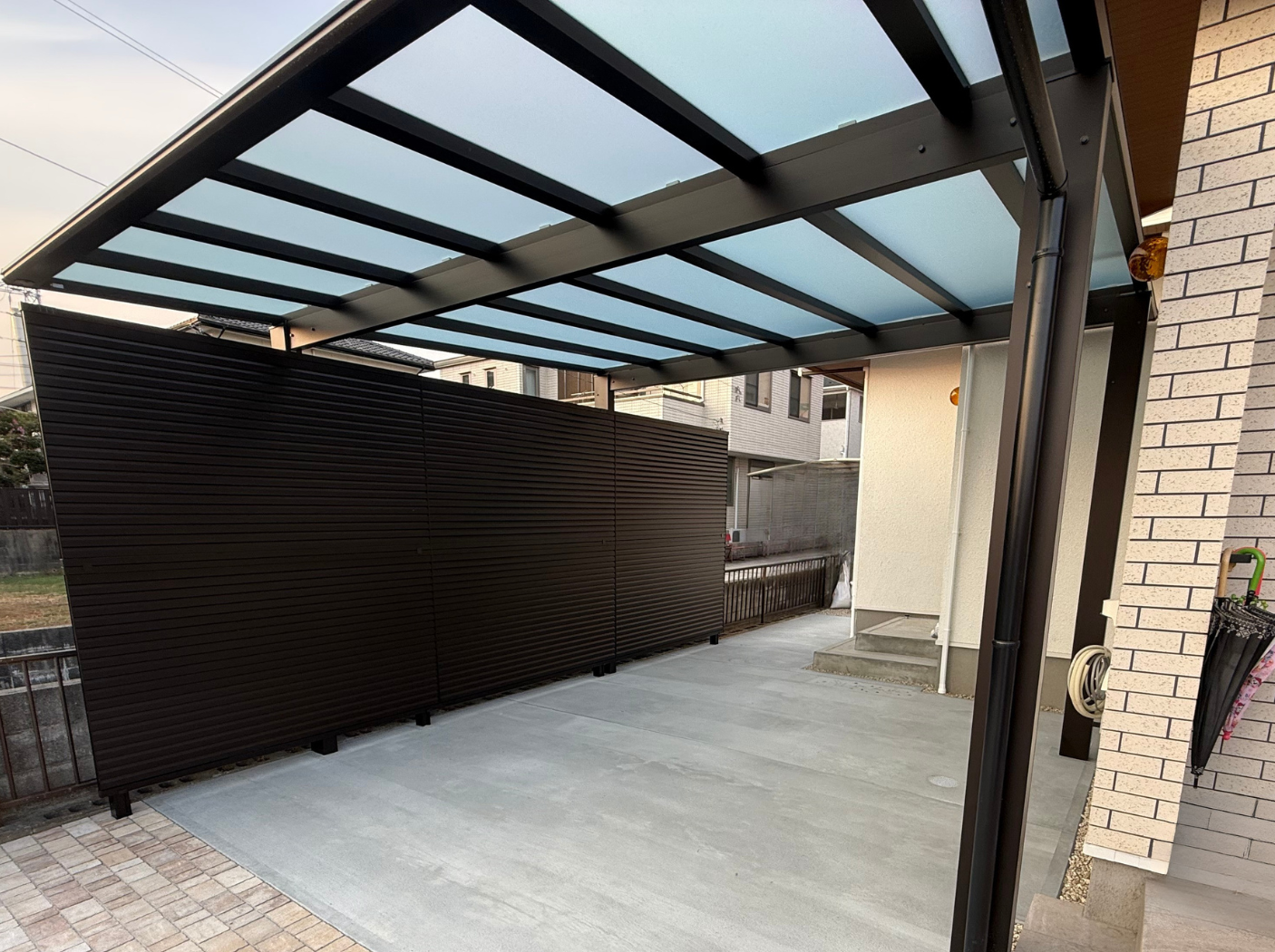 カーポート:YKK エフルージュFIRST600タイプ 前梁延長(カームブラック)