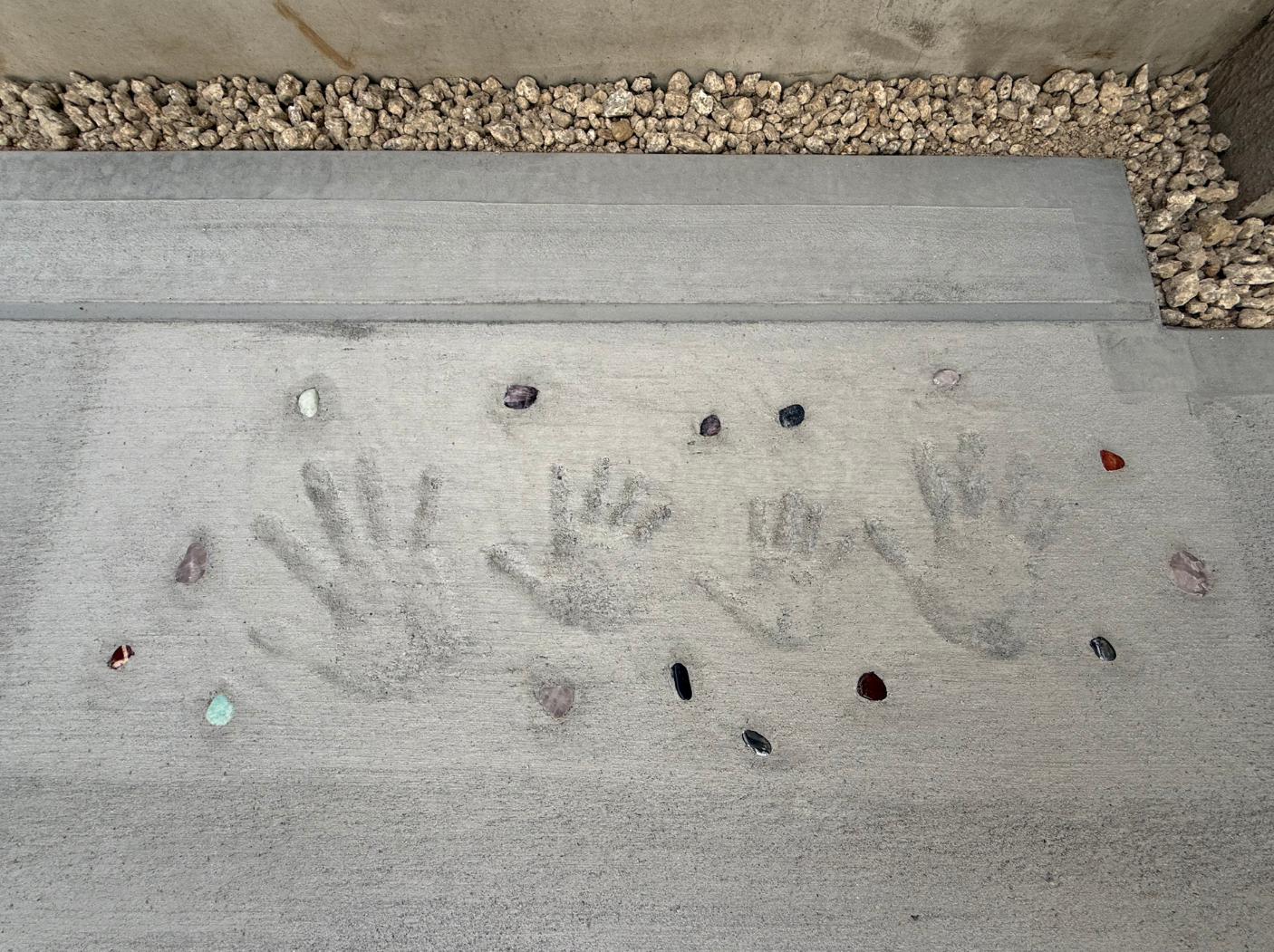 広々とした駐車スペースはタイヤ痕をなるべく残さないデザインを考慮し口元に洗い出しを施しました。