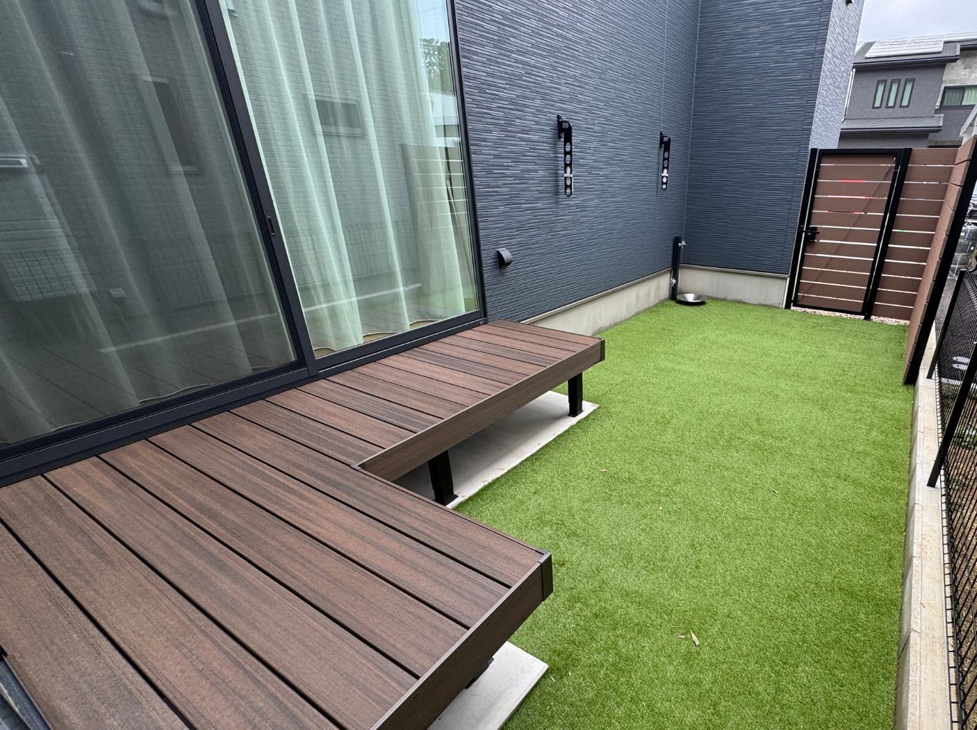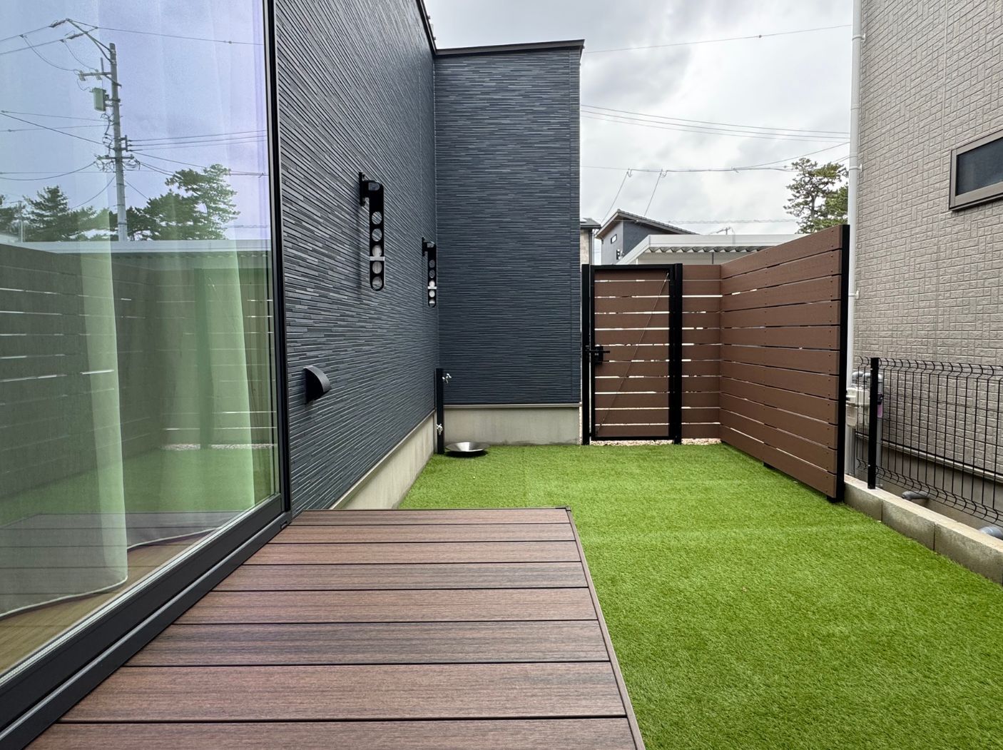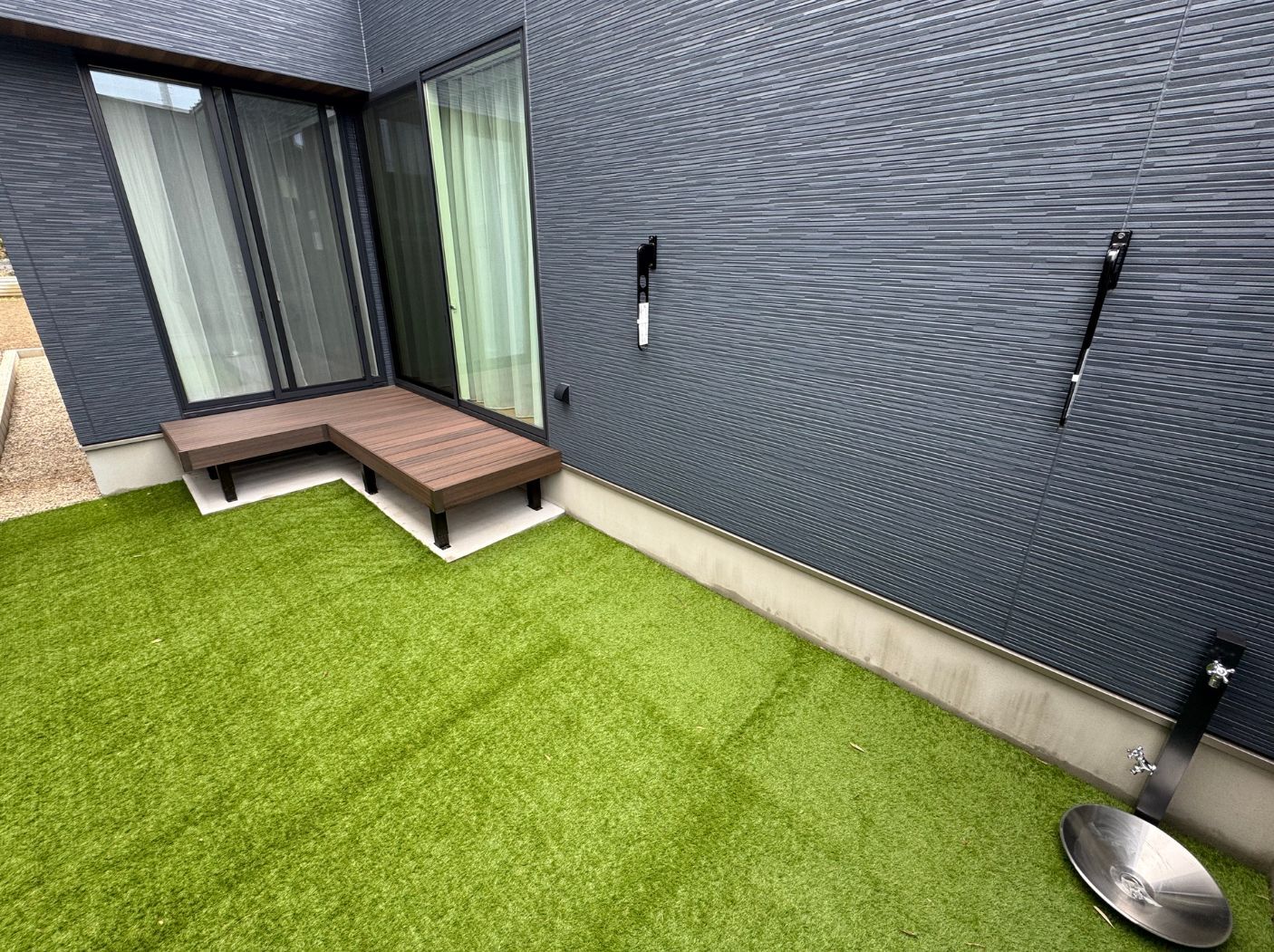 お庭には人工芝を張り、花壇を設け 緑溢れるガーデンスペースが出来上がりました。