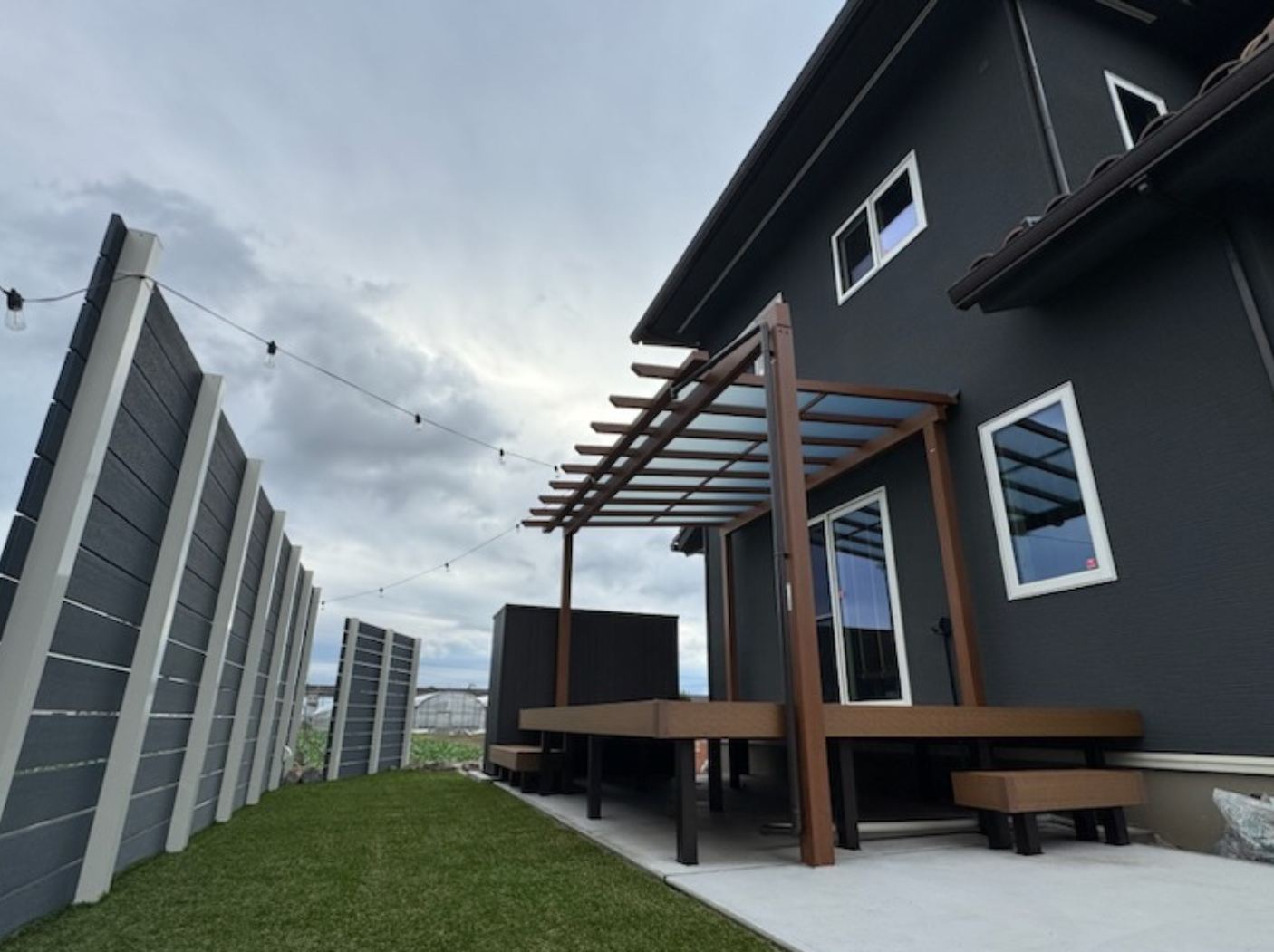 テラス屋根とセットで設置することで 『お庭のリビング』となるプライベート空間を演出できました。