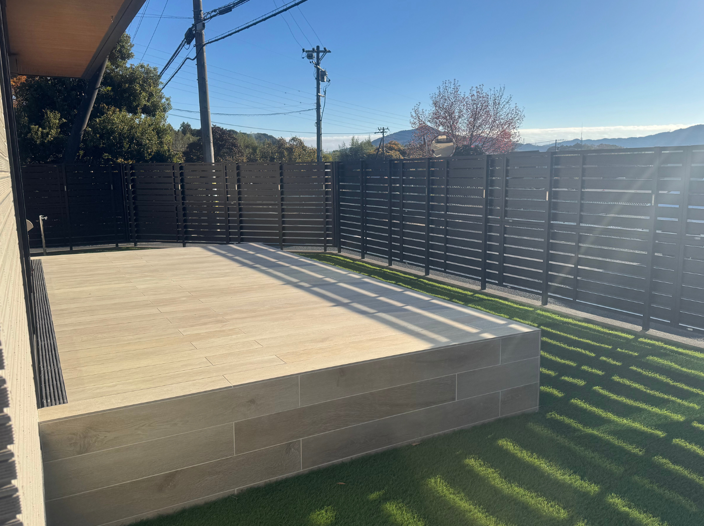 天然木のデッキからお手入れが容易な人工木デッキにリニューアル。