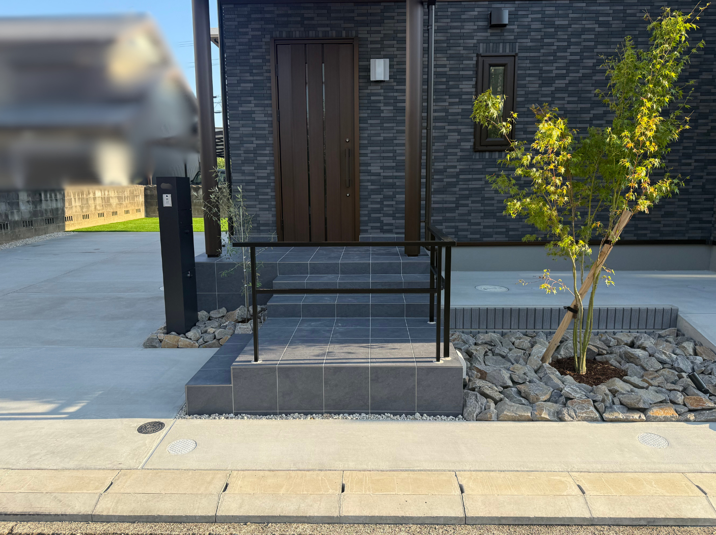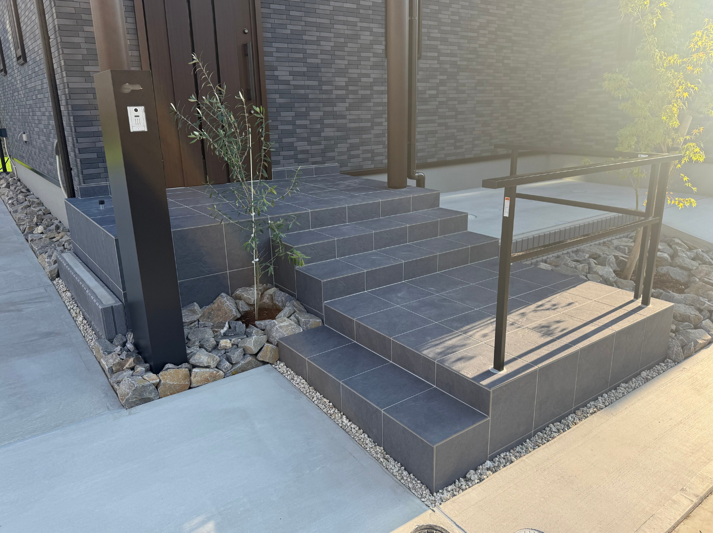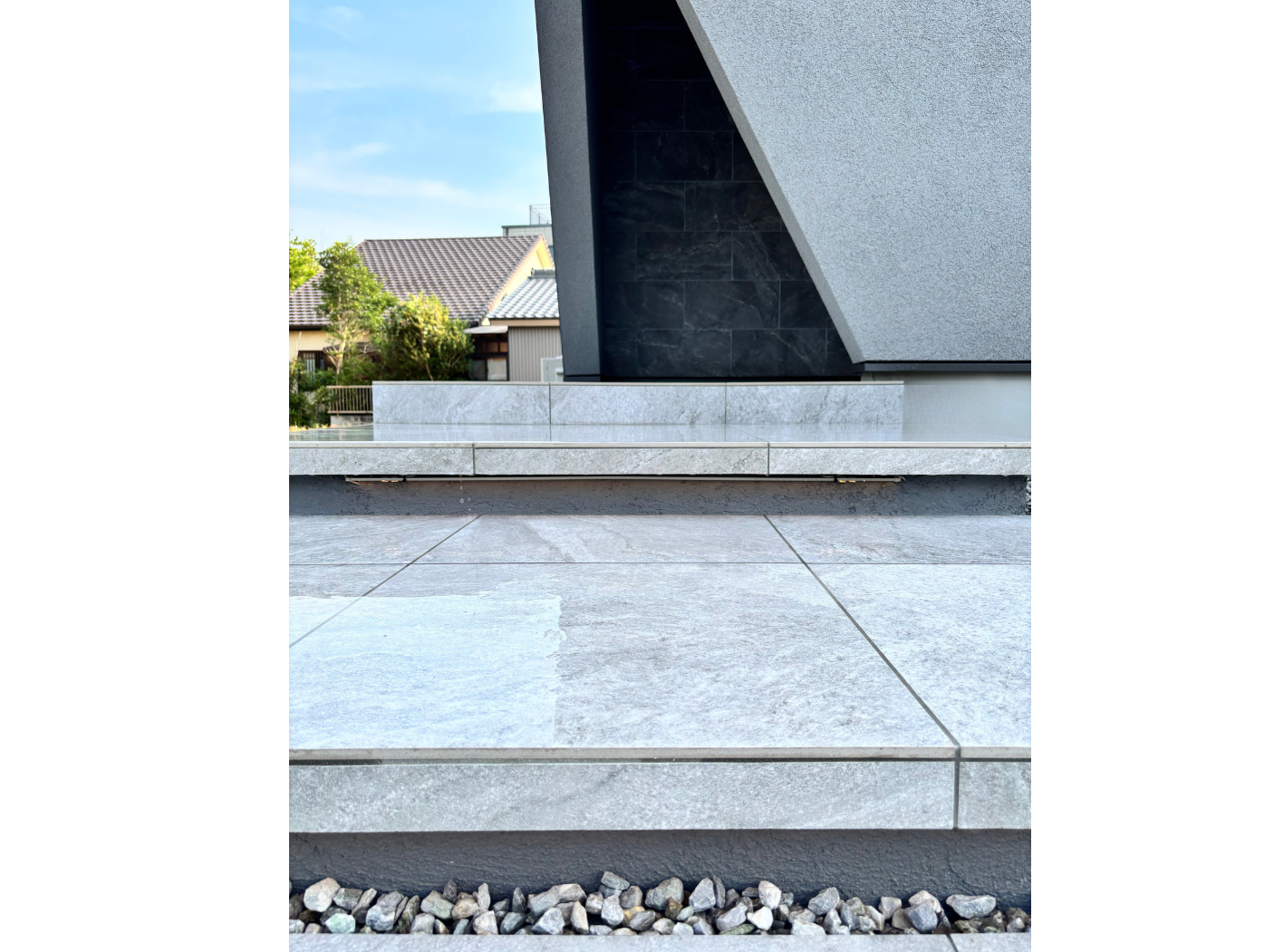 階段だけでなく玄関へ続くスロープを施したことにより機能性がアップしました。