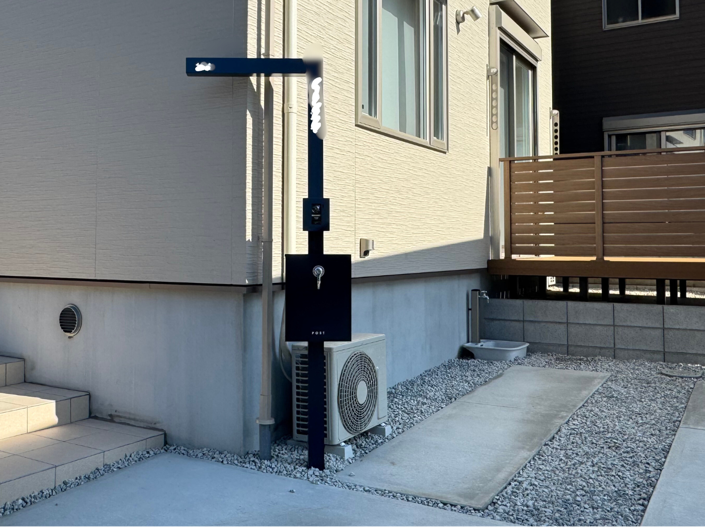 ポストと表札も個性豊かなデザイン性のあるものをお選び頂きました。